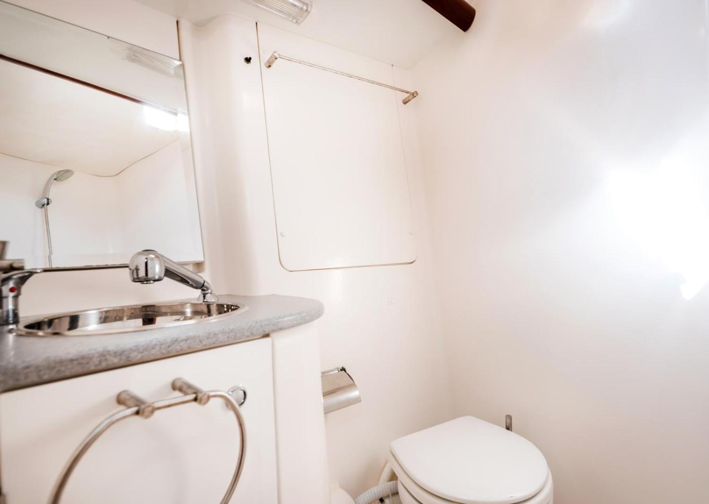 Standard Cabin on Boat. Featuring a private entrance, this air-conditioned mobile home is comprised of 1 living room, 1 separate bedroom and 1 bathroom with a shower and a hairdryer. Guests can make meals in the kitchen that comes with a stovetop, a refrigerator, kitchenware and an oven. This mobile home features a tea and coffee maker, TV, sea views, as well as chocolate for guests. The unit offers 1 bed. ;