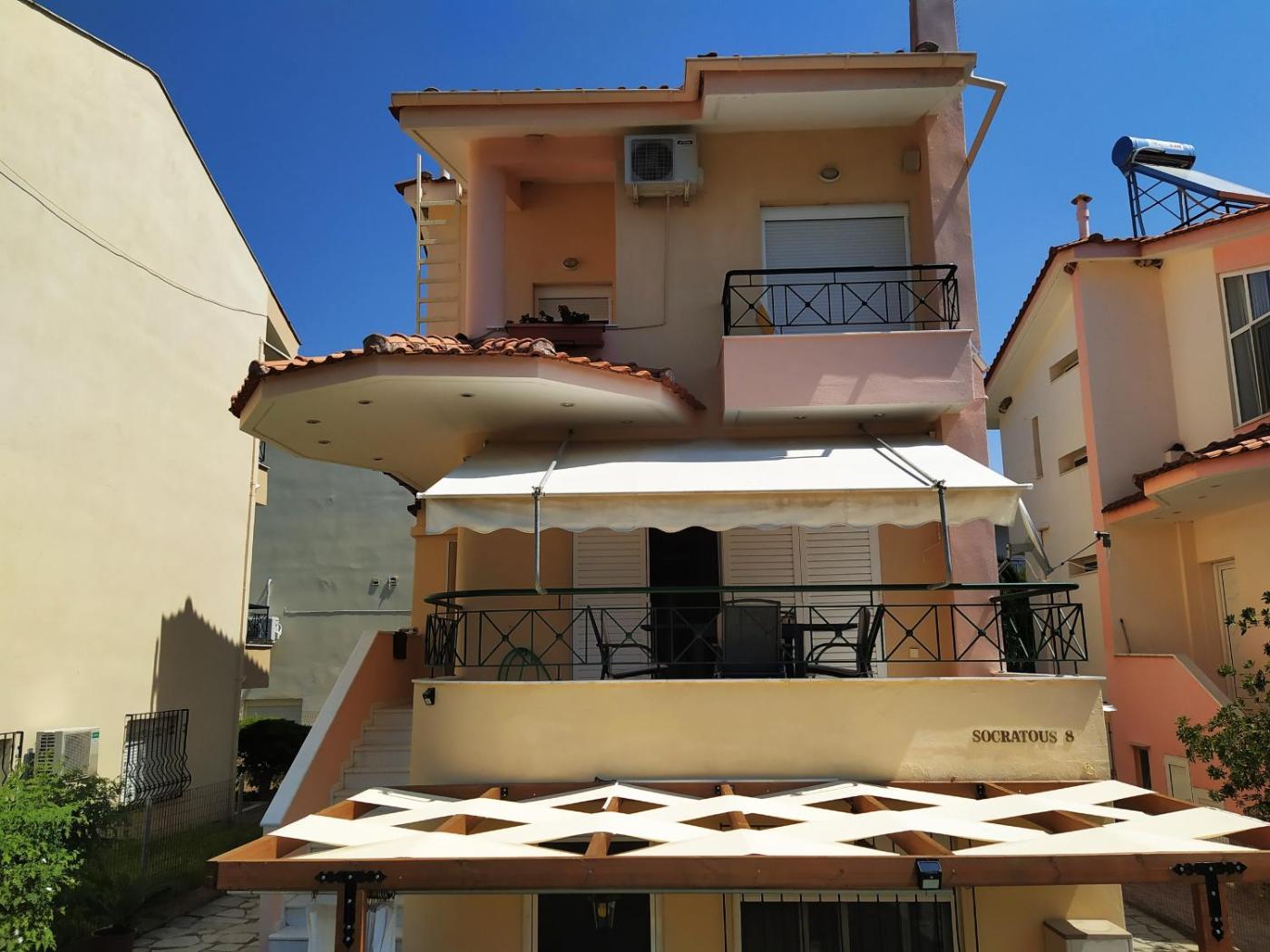 Maisonette. This air-conditioned apartment has 2 bedrooms, a bathroom, a WС, marble staircase, kitchen, fireplace, washing machine, WiFi, TV, living room with loveseat bed, 3 balconies and a large terrace. ;